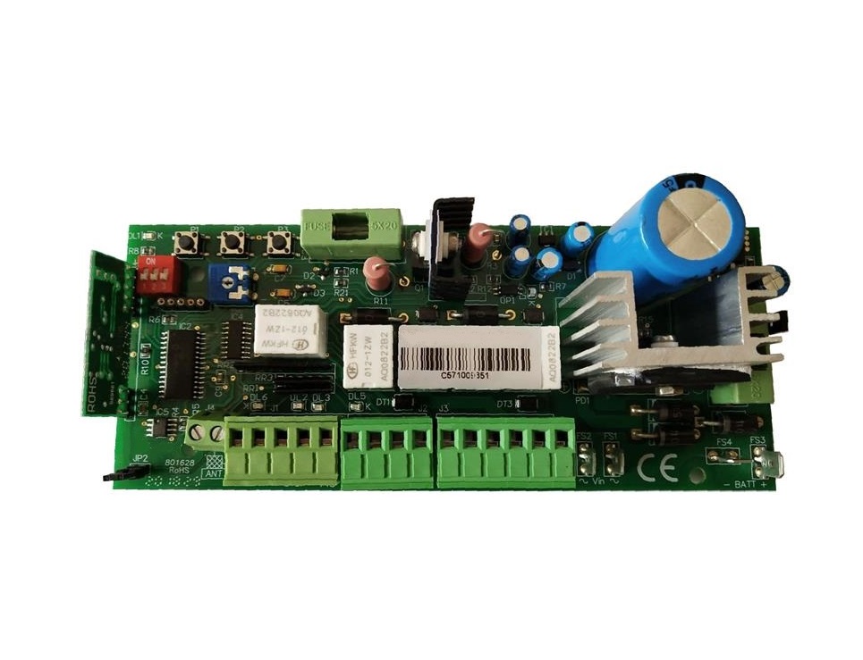 The CBL24.UM is a universal control board for swing or sliding gates with 1 or 2 motors at 24VDC. It provides advanced safety management, motor soft stop and an integrated radio receiver.